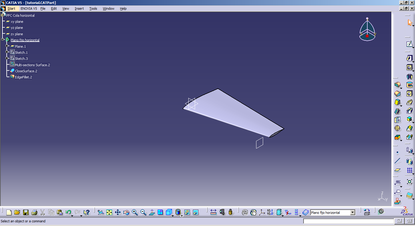 Ya tengo determinadas las medidas exactas de ala y superficies de cola, a la espera de que mañana mi tutora le saque punta, y es el momento de dibujarlas como Dios manda en Catia. Como me ha costado un poco, pero ha sido entretenido, voy a hacer un tutorial para lo que le pueda servir a mis compañeros presentes y futuros. Si alguien sabe Catia bien, probablemente le parecerá de perogrullo lo que voy a contar. Espero que esto sea útil para los que no dominan el programa.